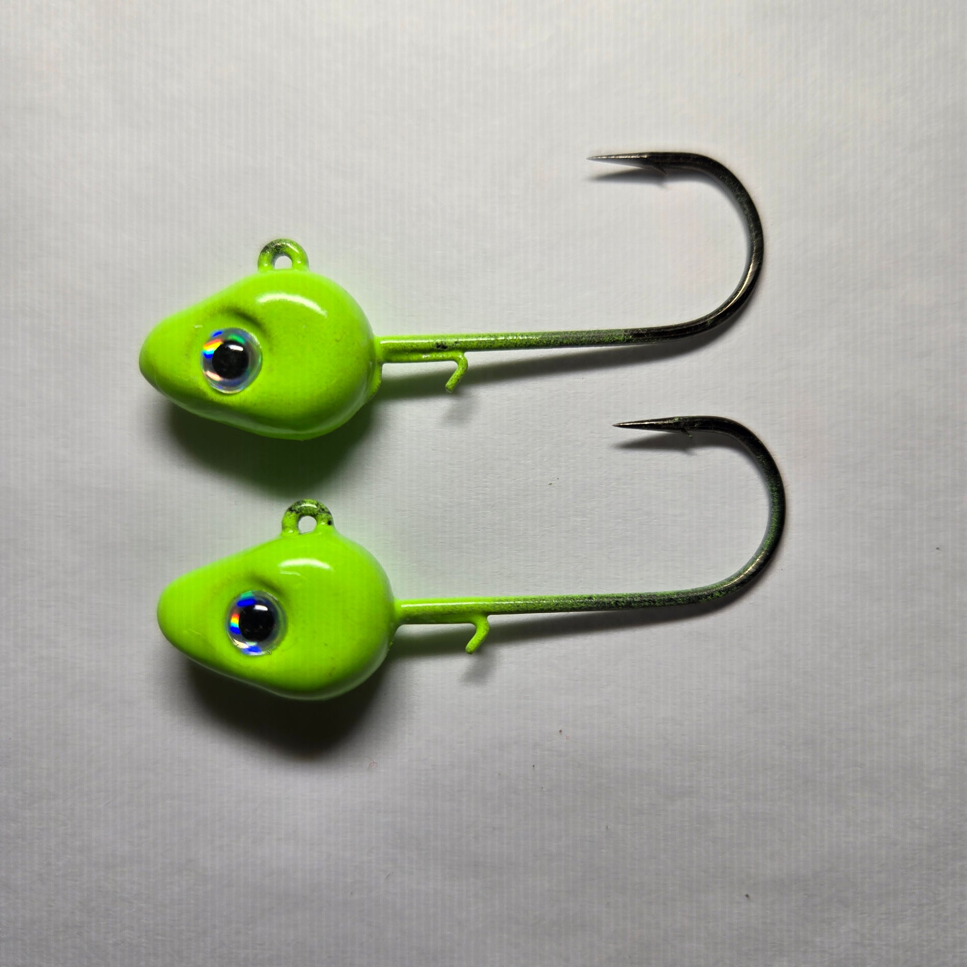 3/8 Ounce Lead Free 3/0 HD Chartreuse Glow Jig - Qty 2